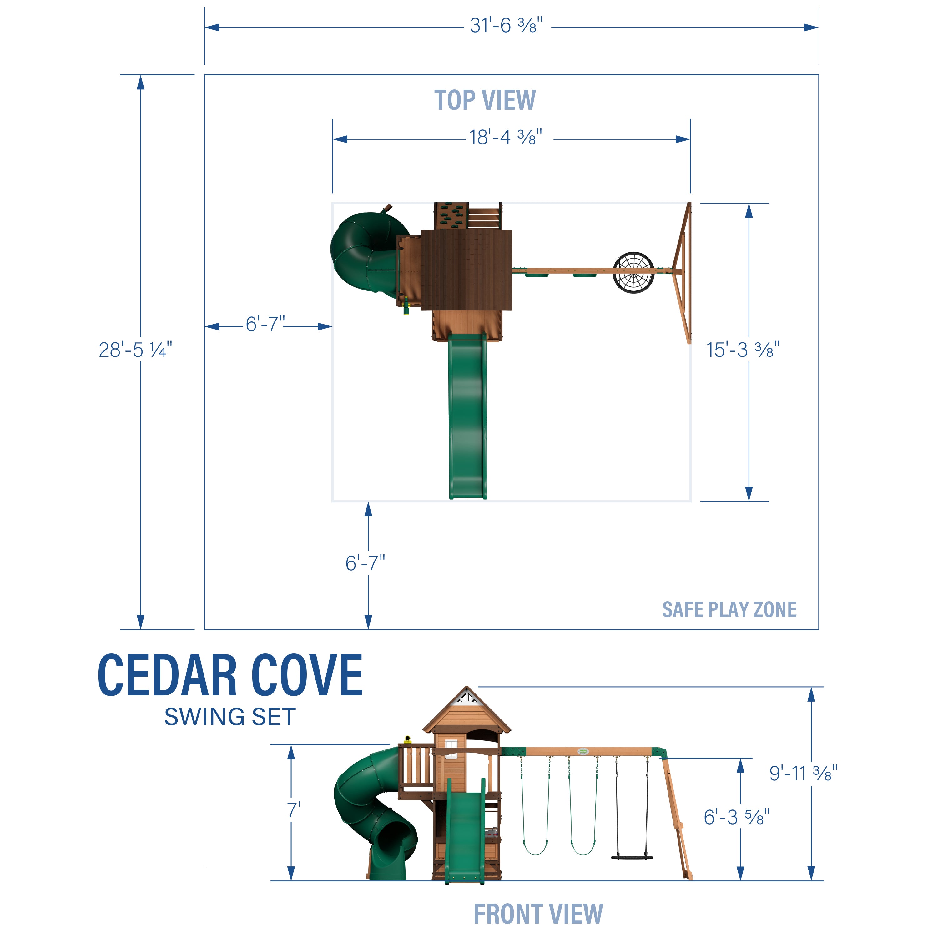 Boredom isn’t an option with our Cedar Cove Swing Set. It’s action-packed with a full assortment of features and still able to fit in almost any size yard.