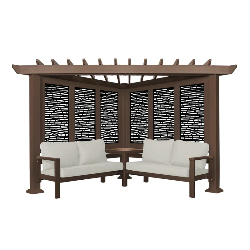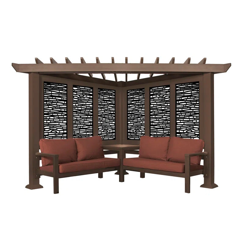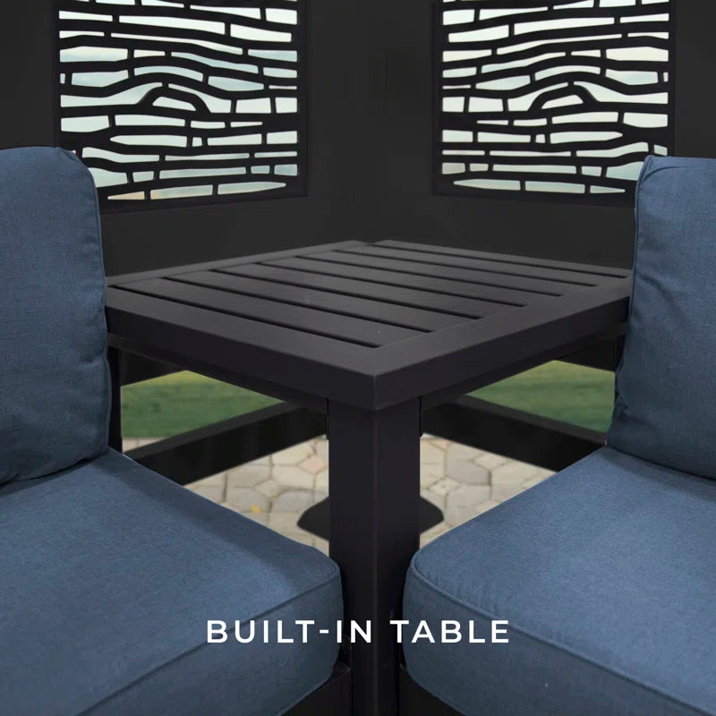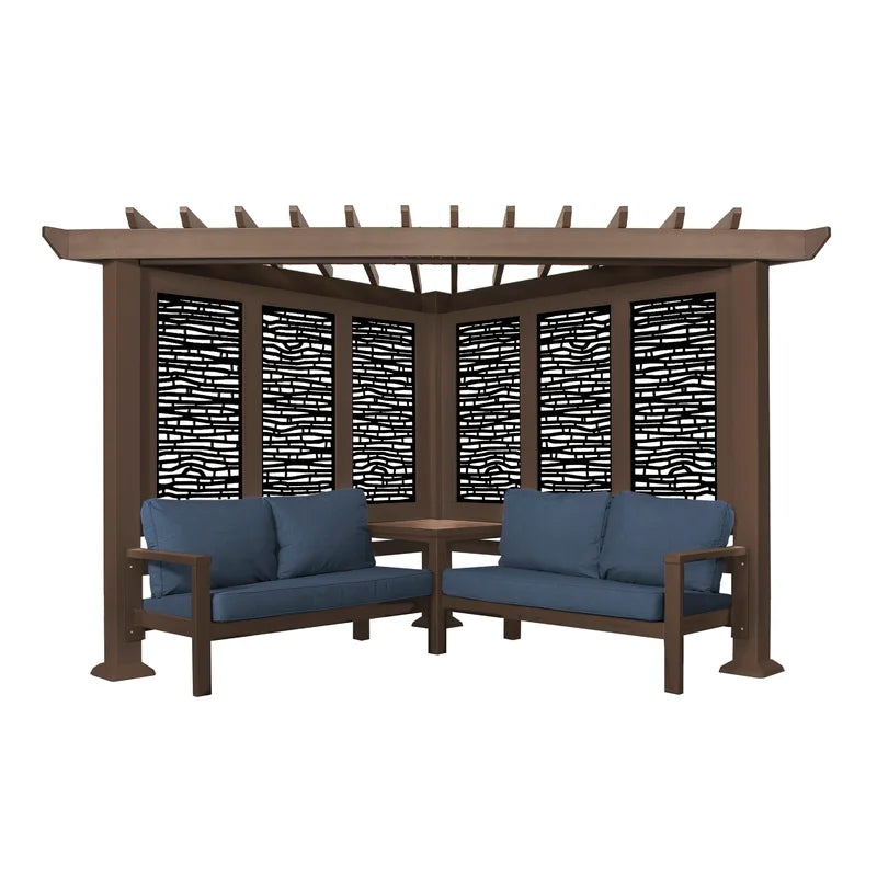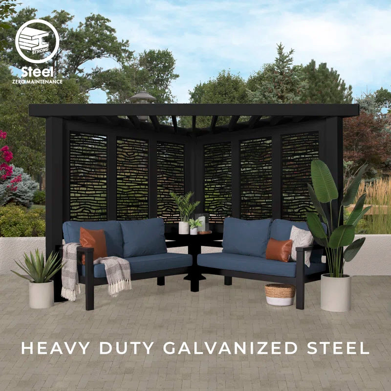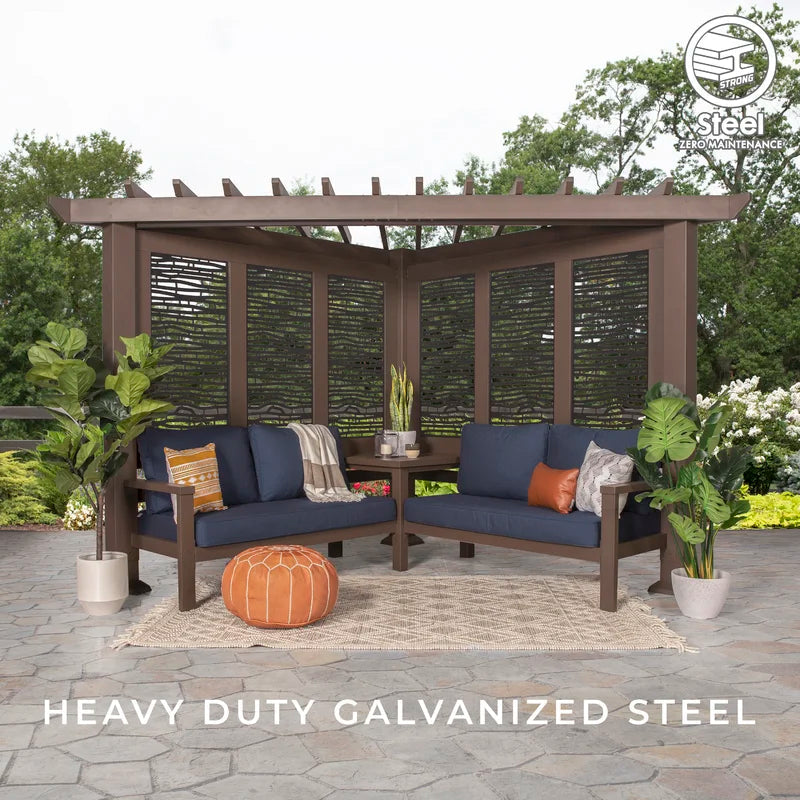What do you get when maintenance-free design and shade meet privacy and flexibility? This cabana pergola with patio seating by backyard discovery. Constructed from 100% galvanized steel, the cabana pergola includes built-in steel seating with 4 color options of market-leading Sunbrella® cushions, as well as an integrated side table, durable composite panels, and a soft canopy for privacy and shade. intended to wow, the unique architecture of the pergola will beautify any location with its functionality. Whether it be a pool or lakeside, fire pit or garden, or even your main patio sectional; the possibilities are endless with the high-performance steel cabana pergola. This cabana pergola uses 100% galvanized steel and stainless-steel hardware both powder-coated to fully protect against rust, corrosion, and UV harm. Regardless of the worry-free comfort, relaxation, or entertainment that you’re after, this cabana pergola has you covered.