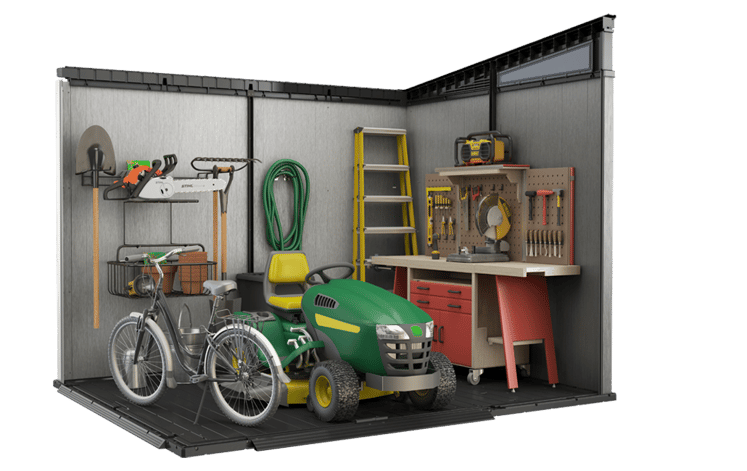 While DUOTECH™ sheds come storage-ready, the material can also be easily modified, allowing you to create a truly personalized space. Paint, cut, drill, & hang on it.