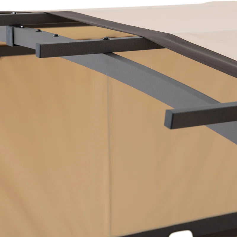 Do you need a place outdoors to entertain friends and family when they visit your home? If you’d love to move the party outside, but don’t have a comfortable place to gather, this 9.5 ft. x 11 ft. arched pergola by the world’s leading ready-to-assemble outdoor structure maker, Sunjoy, is the perfect solution. The brown, rust-resistant powder-coated steel frame pairs perfectly with the tan adjustable weather-resistant canopy trimmed in a rich chocolate brown. The shade provides a welcome retreat on the hottest sunny days. With straight-forward, easy-to-follow assembly instructions you’ll be relaxing with your beverage of choice in your favorite new outdoor living space, and for years to come.