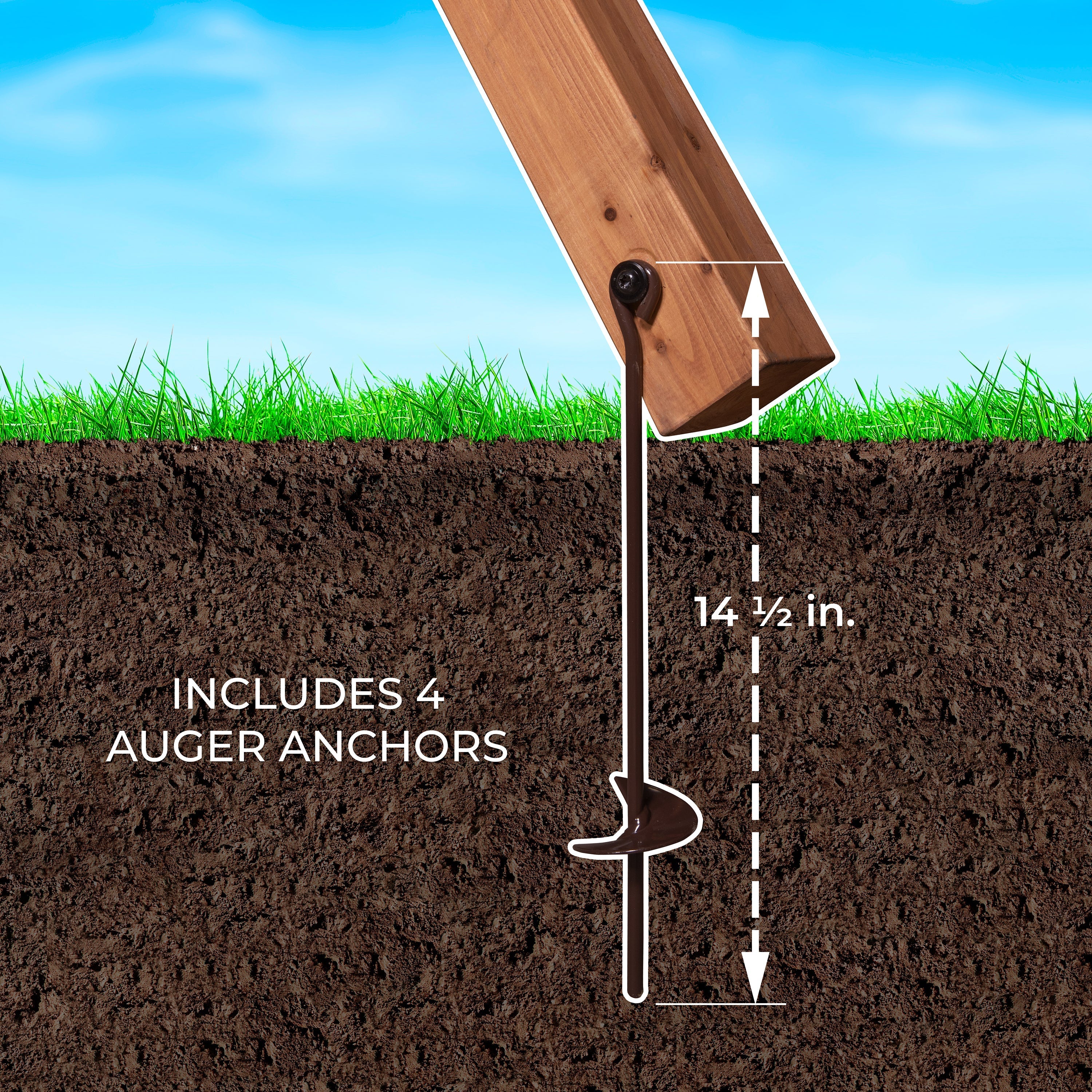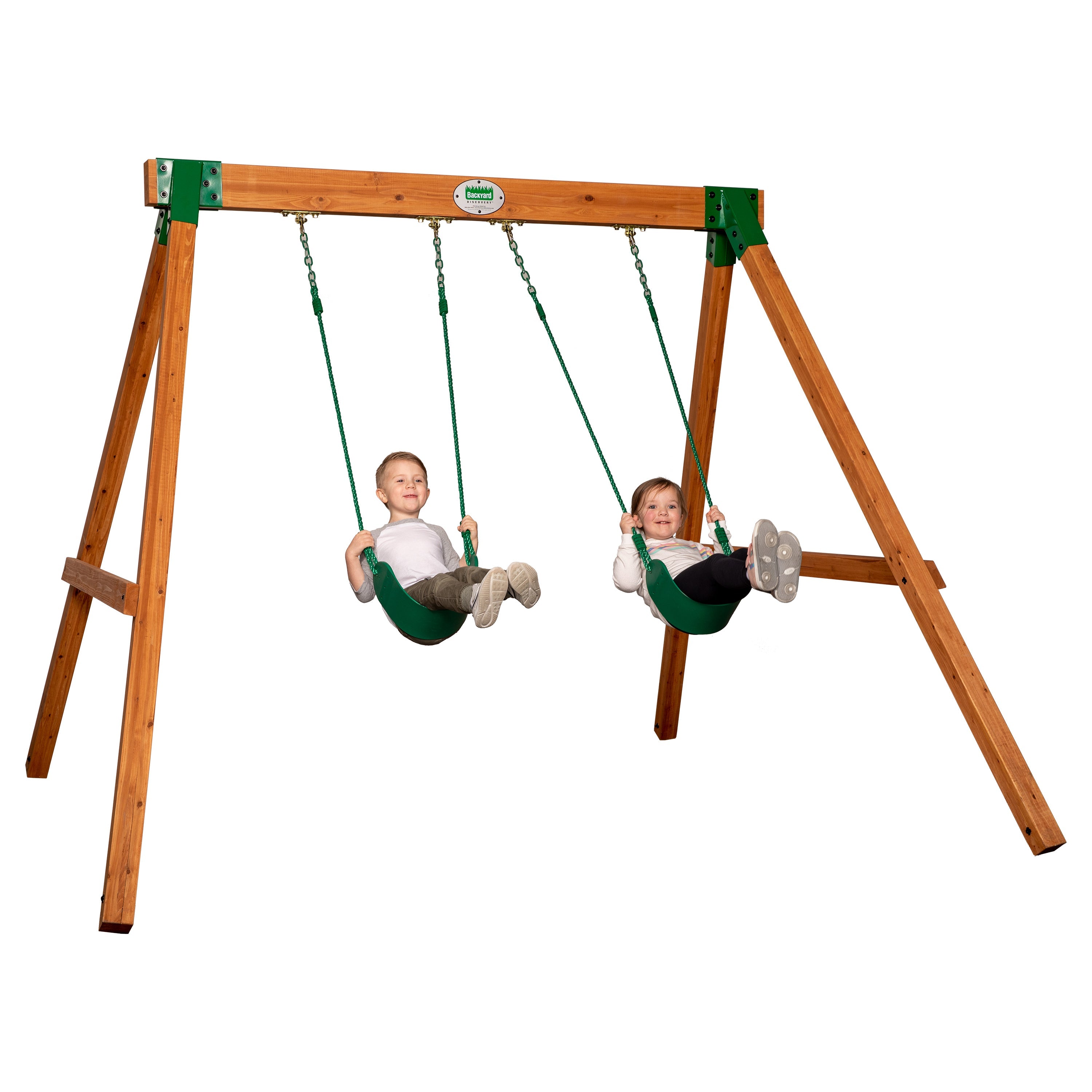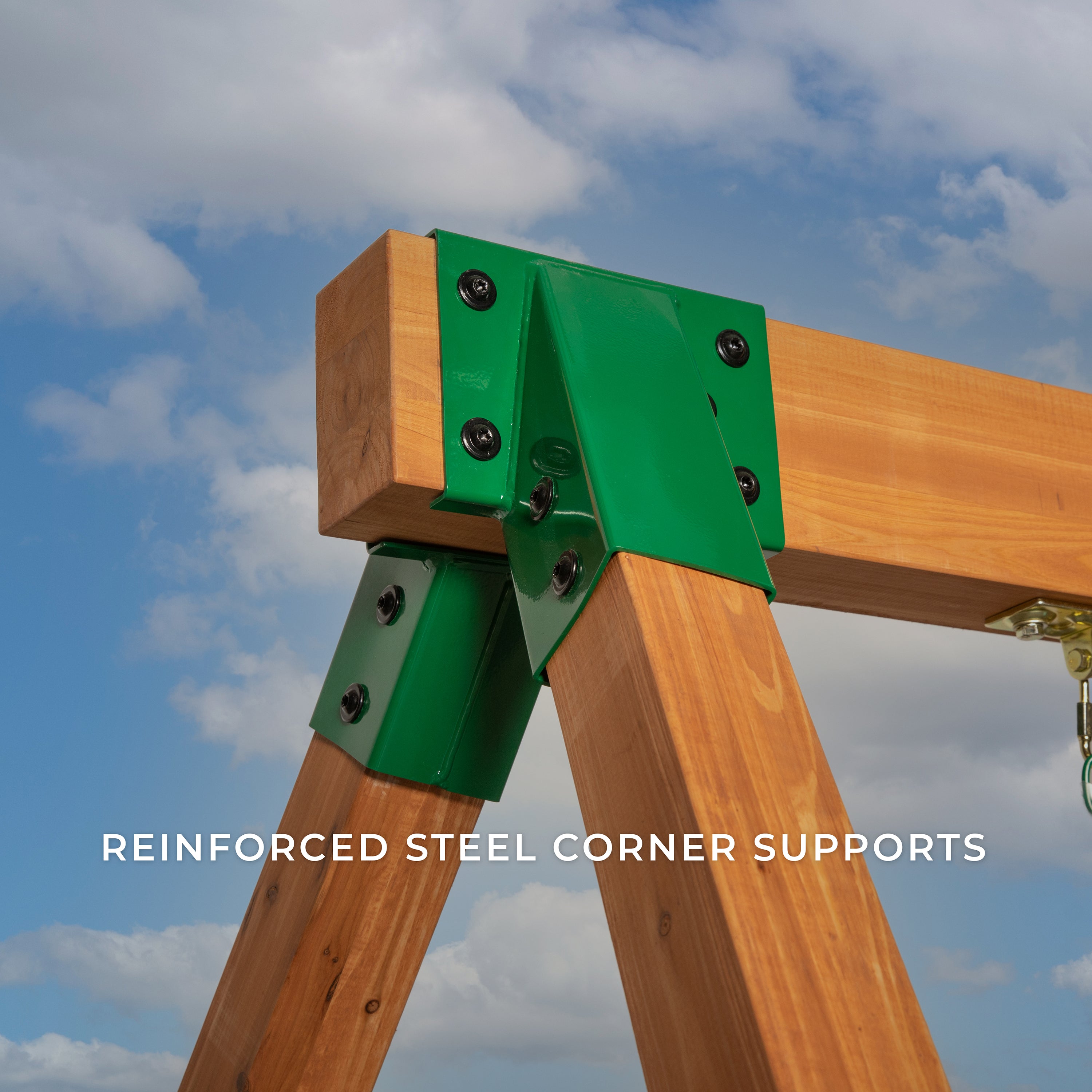 Sturdy wooden posts, steel corner supports, thick swing beam, auger foot anchors, and our strong angled A-frame all come together for an easy-to-assemble option built to last.