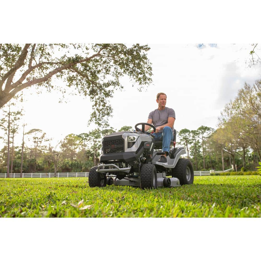 Adjustable Cutting Height, Adjustable Speed, Assembly Required, Blade Brake, Built-in Hitch, Cup Holder, Headlights, Keyed start, Mid Back, Pneumatic Tires, Residential, Reverse Mowing, Rust resistant deck, Single-lever height adjustment, Translucent Fuel Tank |