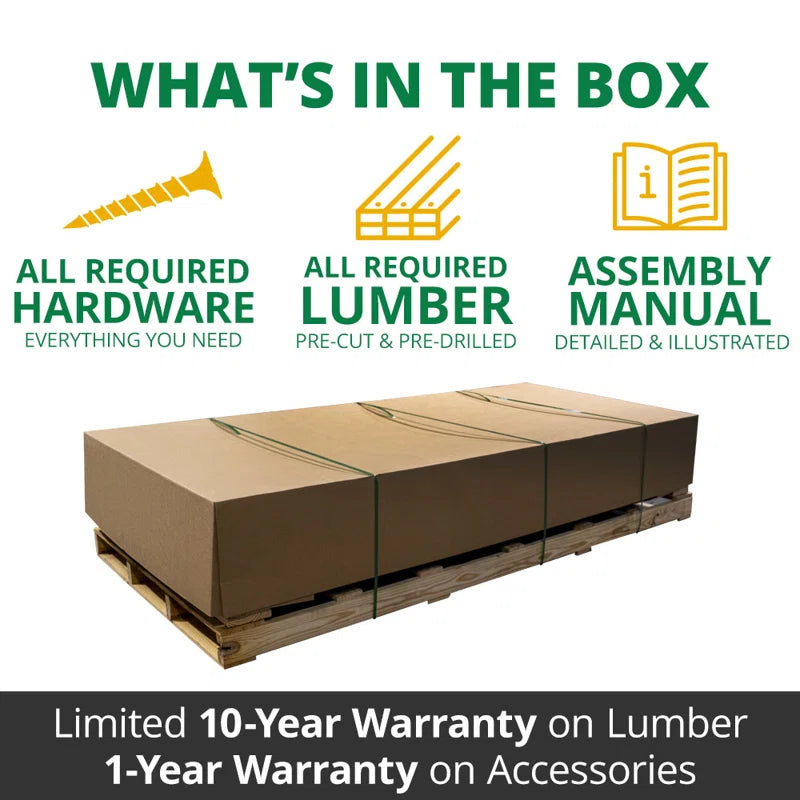 Every day will be exciting with the Gorilla Playsets Pioneer Peak swing set with natural cedar posts in your backyard. Kids will love twisting on the 360° turbo tire swing™ with swivel and will never tire of running up the ramp and over their clatter bridge and tower. This premium cedar wood playset is pre-cut, pre-sanded, and pre-stained in your backyard. The play deck is protected with tongue and groove wood roofs. The entire playset is finished in a beautiful amber stain. Gorilla Playsets cedar naturally resists rot, decay, and insect damage. The Pioneer Peak swing set is available with either the standard wood roof or a treehouse-style wood roof.
