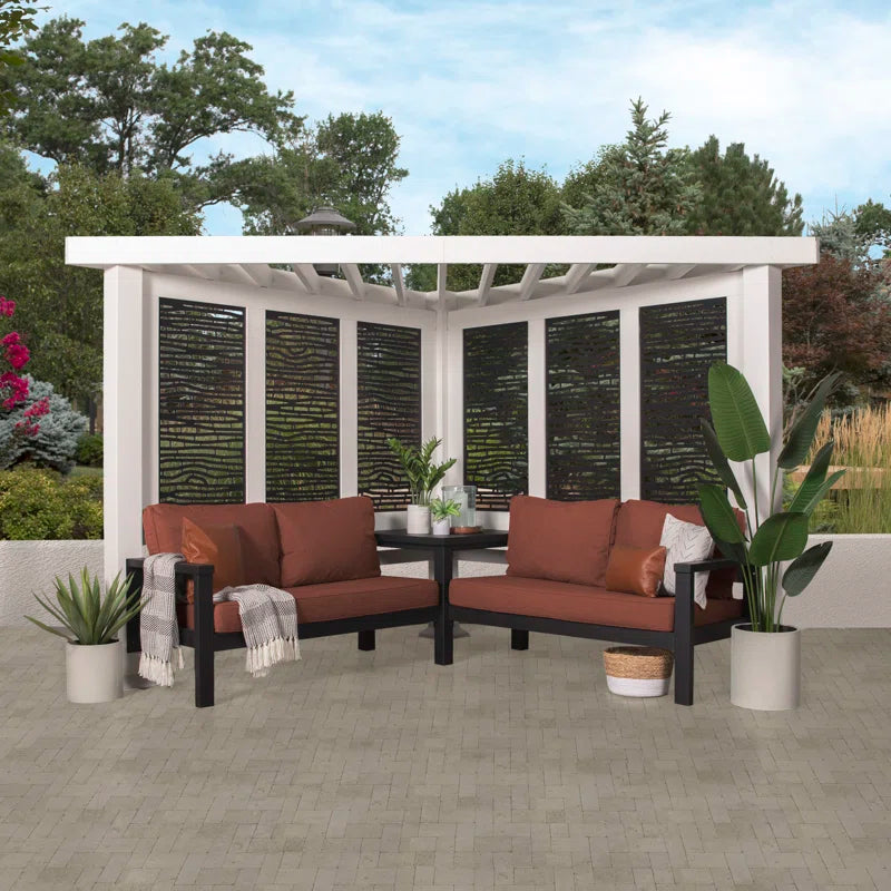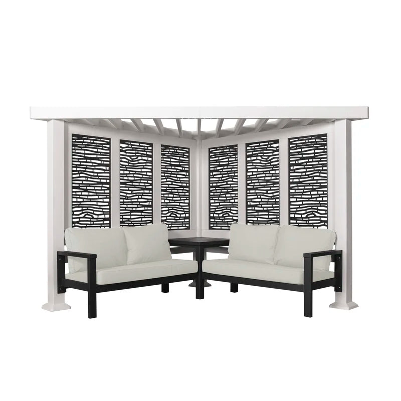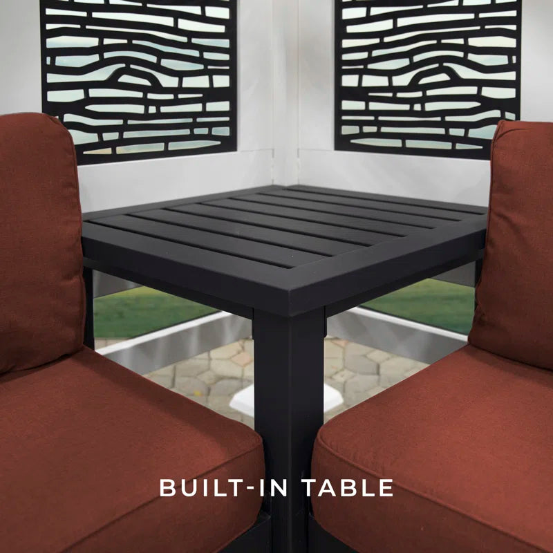 What do you get when maintenance-free design and shade meet privacy and flexibility? This cabana pergola with patio seating by backyard discovery! Constructed from 100% galvanized steel, the cabana pergola includes built-in steel seating with 4 color options of market-leading Sunbrella® cushions, as well as an integrated side table, durable composite panels, and a soft canopy for privacy and shade. intended to wow, the unique architecture of the pergola will beautify any location with its functionality. Whether it be a pool or lakeside, fire pit or garden, or even your main patio sectional; the possibilities are endless with the high-performance steel cabana pergola. This cabana pergola uses 100% galvanized steel and stainless-steel hardware both powder-coated to fully protect against rust, corrosion, and UV harm. Regardless of the worry-free comfort, relaxation, or entertainment that you’re after, this cabana pergola has you covered!