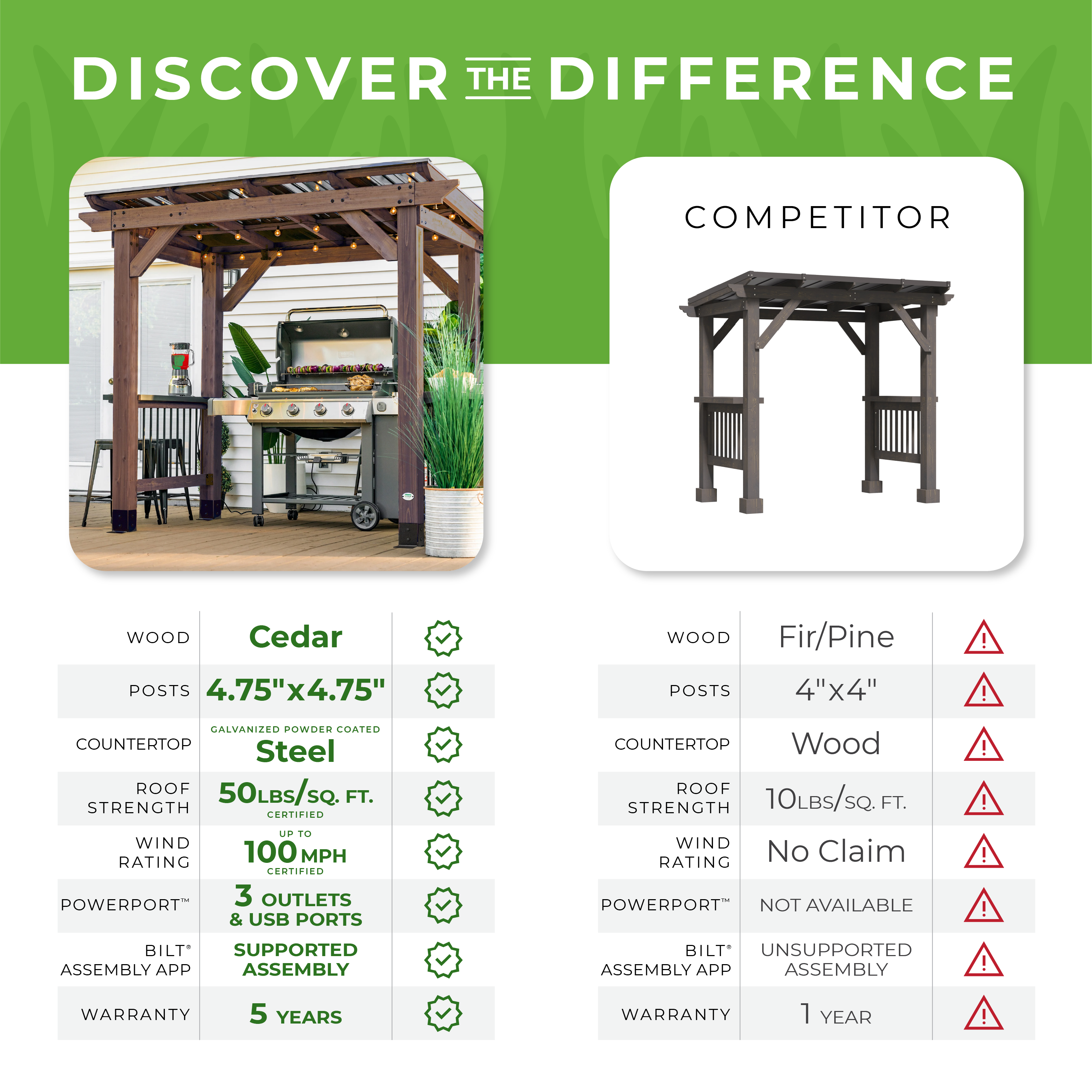 With space for grills up to 70” wide — and featuring our exclusive PowerPort™, steel countertops, customizable accessory hooks, and more — this grill gazebo is going to redefine what it’s like to cook and eat outdoors.