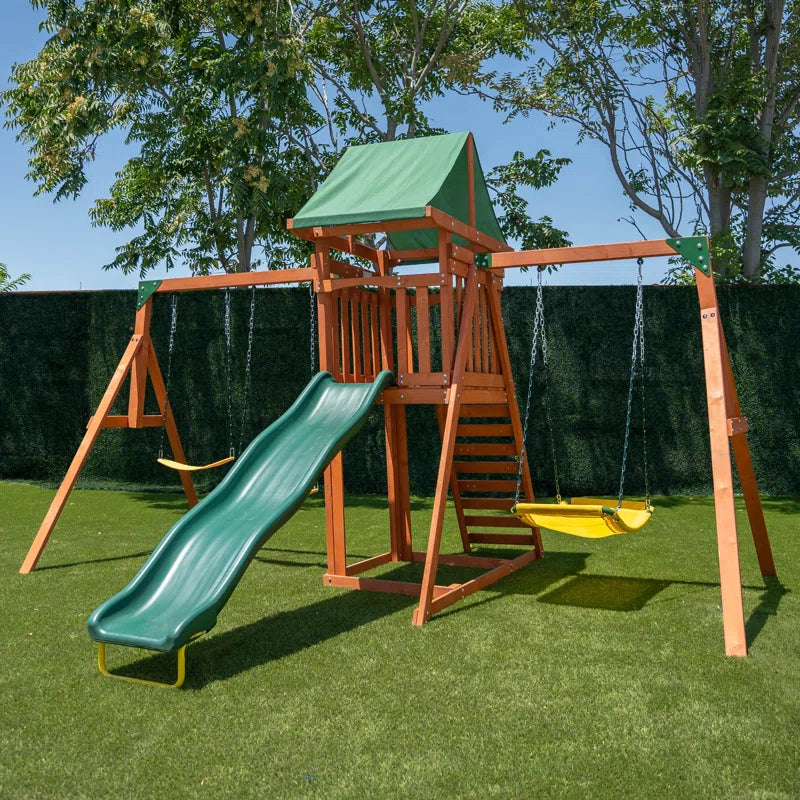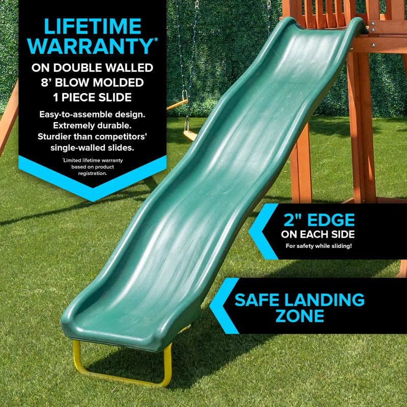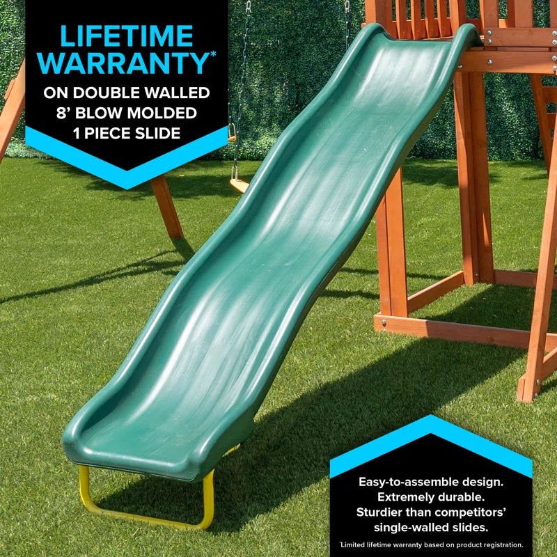 Sherwood Wooden Swing Set with Lifetime Warranty on 8′ Double Wall Slide