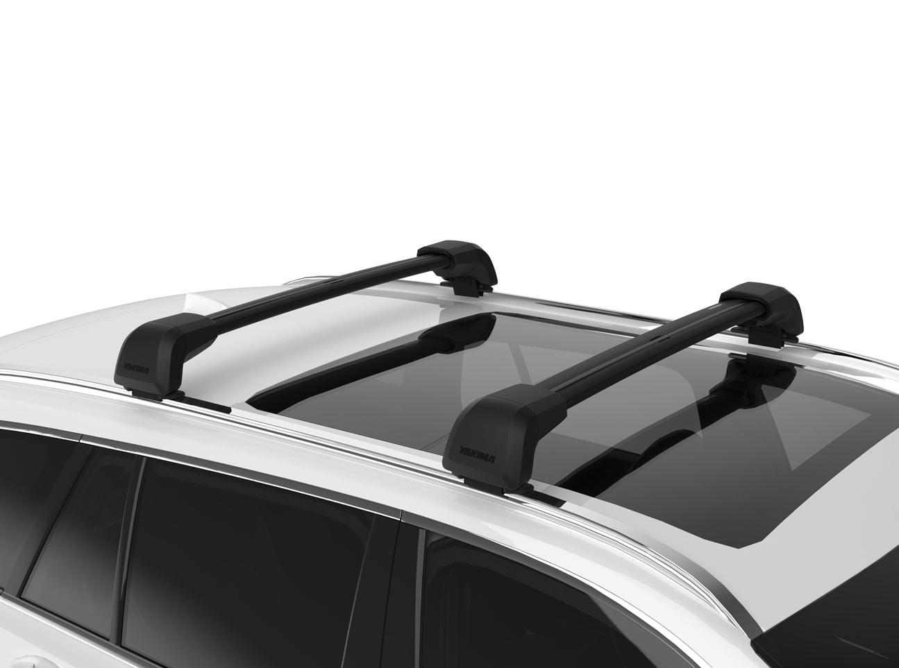 Roof rack system for vehicles with flush-mounted side rails. Features pitch adjustments for the perfect fit on rounded roof-lines and attaches to the vehicle with vehicle-specific SightClips.