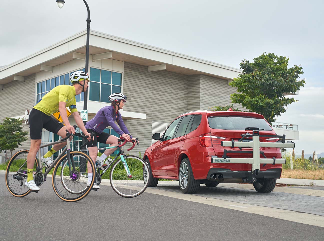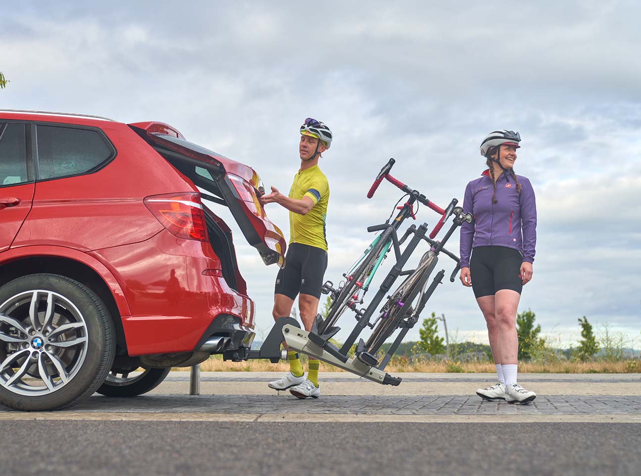 The StageTwo is built to carry your valuable steeds anywhere you need to go, securely and in style. From road to mountain and kids to fat bikes the StrongArm hook quickly secures your bike. The stadium seating tiered architecture increases ground clearance on rutted trails or steep driveways. While the offset tray design further minimizes bike to bike interference and maximizes functionality. The Tool-free locking SpeedKnob™ 2.0 makes install easier than ever, and the forward-facing remote tilt lever means fast access to the rear of your vehicle and integrated locking cables, combined with the ability to add your own lock, provide serious security.
