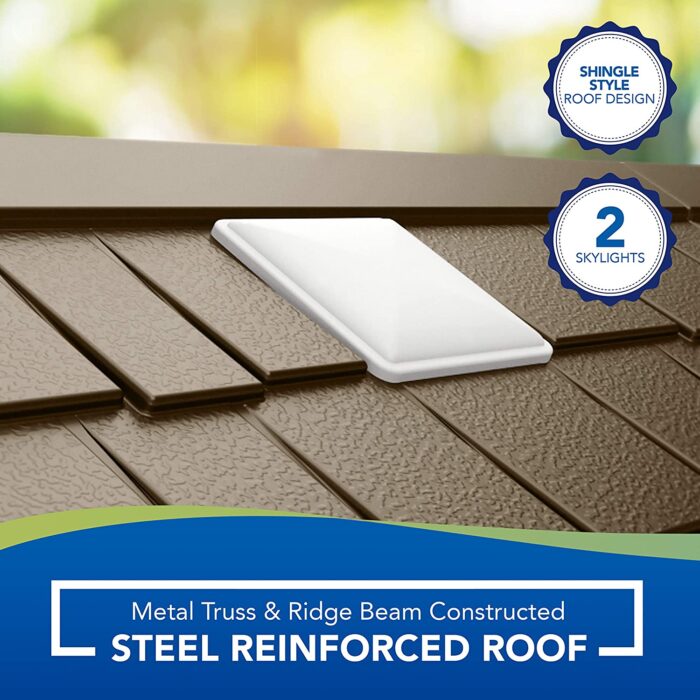 The roof is engineered from hardened weatherproof plastic and reinforced with a metal truss system built to battle the elements.